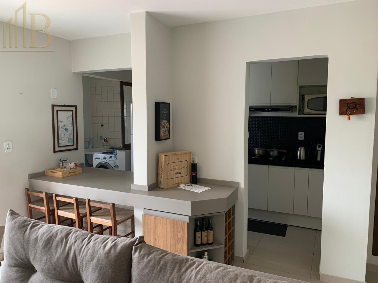 Ótimo apartamento de um dormitório (suíte), sala com lareira, churrasqueira, lavabo, cozinha estilo americana com móveis sob medida, lavanderia, não possui garagem no prédio.