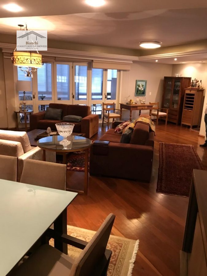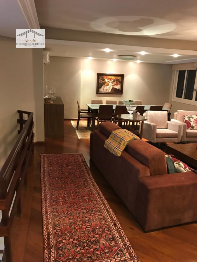 Composta de 3 dormitórios, 1 suíte com closet, cozinha ampla, área de serviço, dependência de empregada, lavabos, amplas salas de estar, sacadas, terraço, churrasqueira, 3 vagas de garagem.